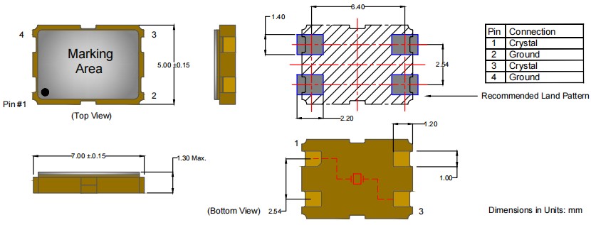 AE-131-A-2-4085-2-30-28M0000,7050mm,Anderson品牌,AE131,微處理器應用晶振,尺寸圖