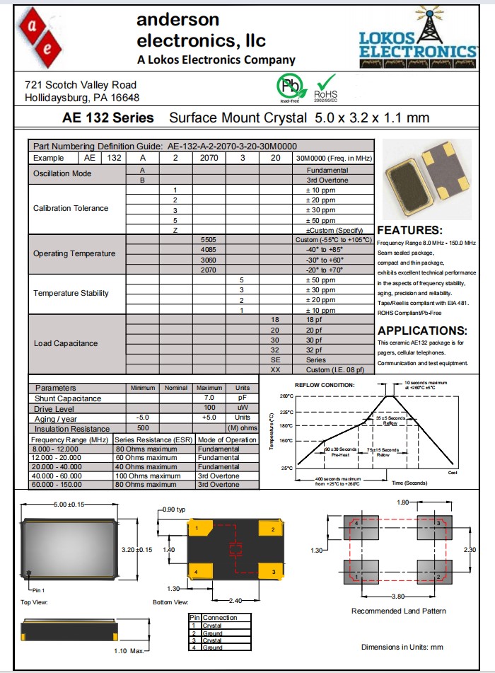 AE-132-A-2-5505-3-20-24M0000,5032mm,Anderson晶振,AE132,尋呼機應用晶振,參數(shù)表