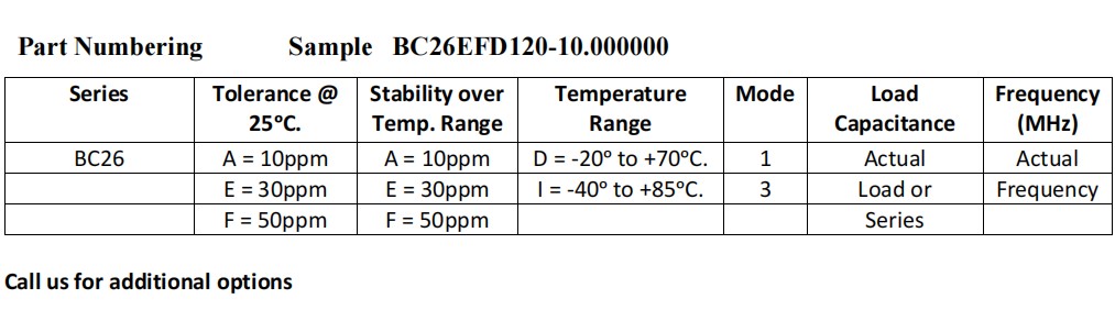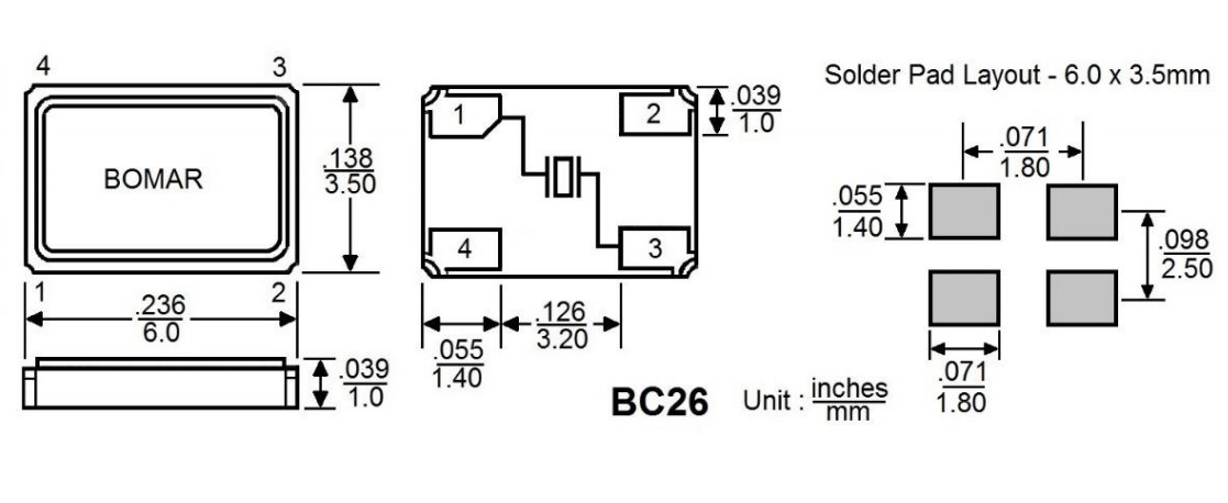 BC26EFD120-26.000000,6035mm,Bomar無源晶振,26MHz,BC26,汽車電子晶振,參數表