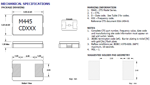 | 445I23D20M00000 | CTS晶振 | 445 | MHz Crystal | 20MHz |