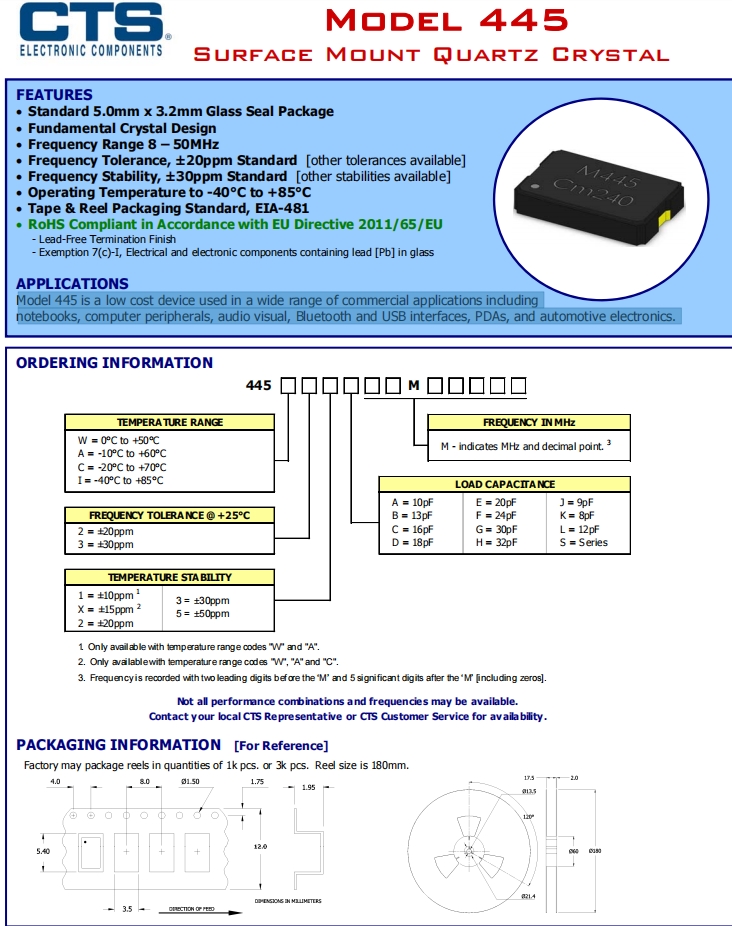 | 445C33D24M57600 | CTS晶振 | 445 | MHz Crystal | 24.576MHz |