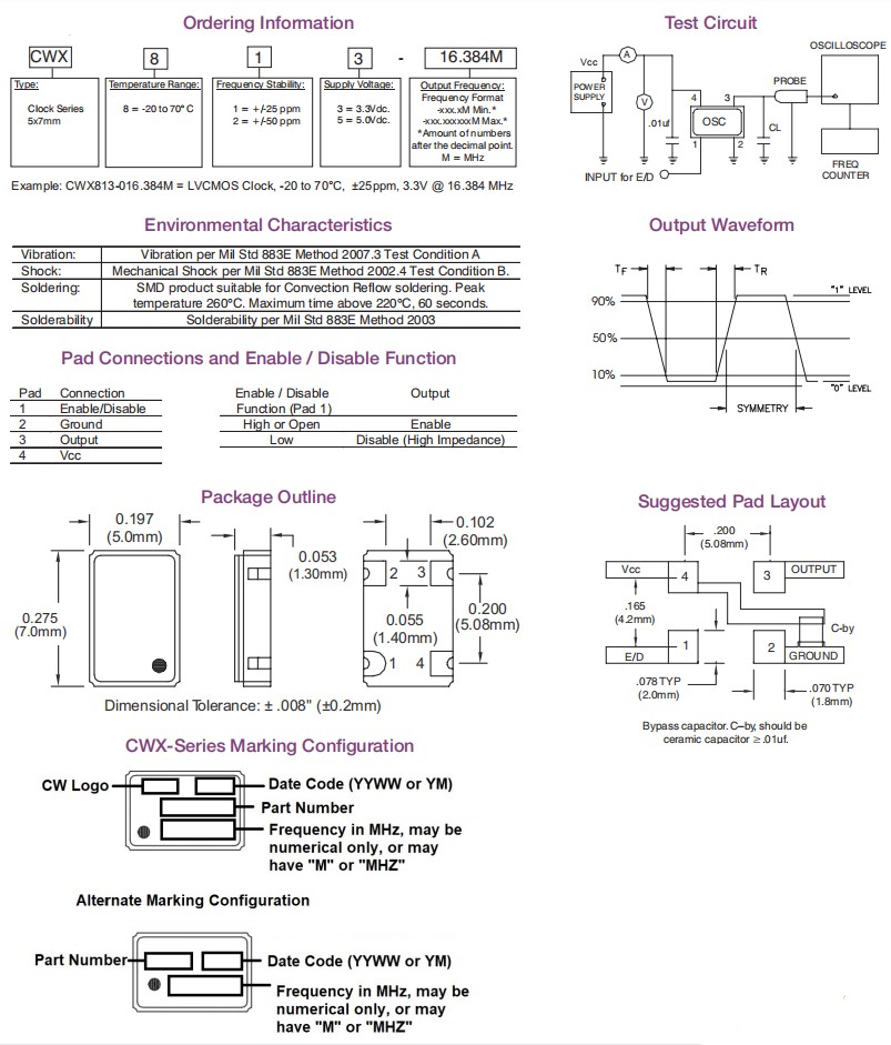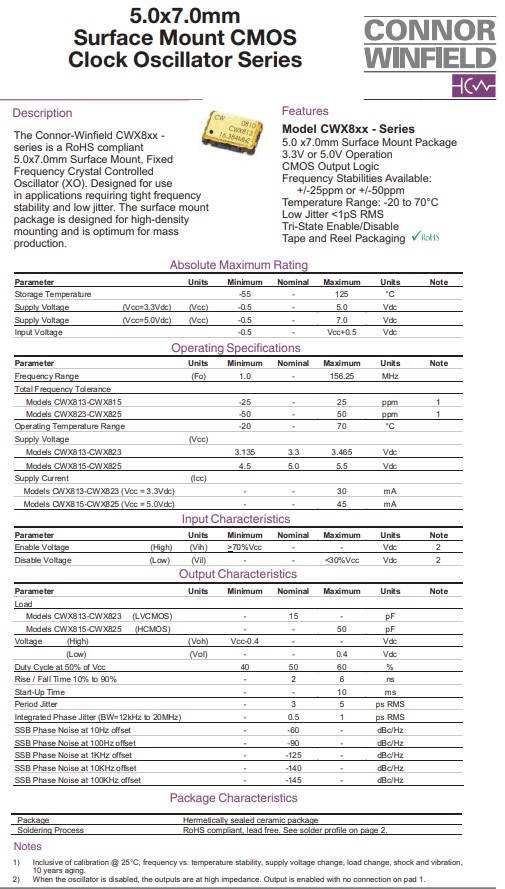 | CWX813-050.0M | ConnorWinfield晶振 | CWX813 | 50MHz | -20°C ~ 70°C | 貼片晶振 |