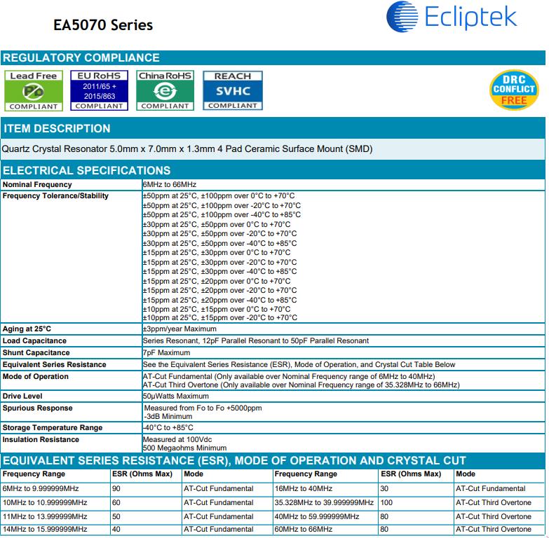 ECLIPTEK晶振公司是一家專注于為我們的市場提供高質量進口晶振產品系列產品的公司。我們的目標是通過提供無與倫比的客戶服務和對客戶、員工和供應商的長期承諾,穩步發展。