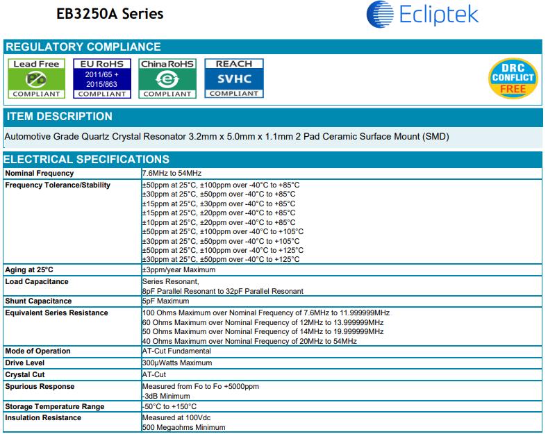 ECLIPTEK晶振將有效率的使用自然資源和能源,以便從源頭減少廢物產(chǎn)生和排放.我們將在關(guān)注于預(yù)防環(huán)境和安全事故,保護(hù)公眾健康的同時,努力改進(jìn)我們的操作.我公司將積極參與加強公眾環(huán)境、健康和安全意識的活動,提高公眾對普遍的環(huán)境、健康和安全問題的注意.日蝕晶振,EB3250A石英諧振器,EB3250AXA20-26.000M-TR晶振.
