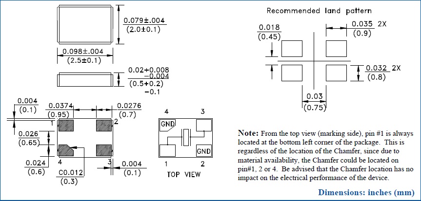 封裝 | 金屬面貼片 | 尺寸 | 2.0*1.6*0.5mm |