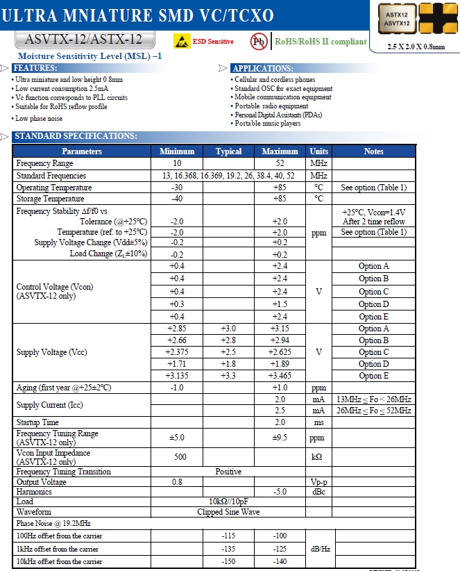 Abracon晶振,溫補(bǔ)振蕩器,ASTX-12有源晶振.小型貼片有源晶振,體積的變小也使產(chǎn)品帶來了更高的穩(wěn)定性能,接縫密封石英晶體振蕩器,精度高,覆蓋頻率范圍寬的特點(diǎn),貼片高速自動安裝和高溫回流焊設(shè)計(jì),Optionable待機(jī)輸出三態(tài)輸出功能,電源電壓范圍:1.8V?5V,高穩(wěn)定性,低抖動,低功耗,主要應(yīng)用領(lǐng)域:無線通訊,智能手機(jī),平板筆記本W(wǎng)LAN,藍(lán)牙,數(shù)碼相機(jī),DSL和各式IT產(chǎn)品的晶振應(yīng)用,三態(tài)功能,PC和LCDM等數(shù)碼領(lǐng)域,符合RoHS/無鉛.