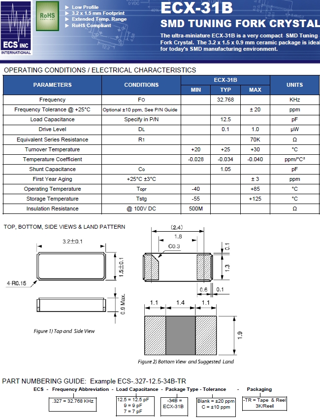 | ECS晶振 | 單位 | ECX-31B晶振 | 石英晶振基本條件 |