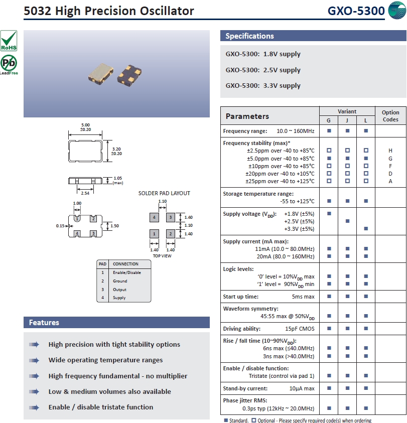 Golledge晶振,石英晶振,GXO-5300石英晶體振蕩子.5032mm體積的石英晶體振蕩器,有源晶振,該產(chǎn)品可驅(qū)動(dòng)2.5V的溫補(bǔ)晶振,壓控晶振,VC-TCXO晶體振蕩器產(chǎn)品,電源電壓的低電耗型,編帶包裝方式,可對(duì)應(yīng)自動(dòng)高速貼片機(jī)自動(dòng)焊盤,及IR回流焊盤(無鉛對(duì)應(yīng)),為無鉛產(chǎn)品,小型,質(zhì)地輕.產(chǎn)品被廣泛應(yīng)用到集成電路,程控交換系統(tǒng),無線發(fā)射基站.