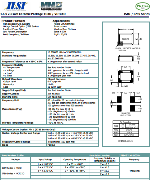 ILSI晶振,I789晶振,高質(zhì)量振蕩器.智能手機(jī)晶振,產(chǎn)品具有高精度超小型的表面貼片型石英晶體振蕩器,最適用于移動通信終端的基準(zhǔn)時(shí)鐘等移動通信領(lǐng)域.比如智能手機(jī),無線通信,衛(wèi)星導(dǎo)航,平臺基站等較高端的數(shù)碼產(chǎn)品,晶振本身小型,薄型具備各類移動通信的基準(zhǔn)時(shí)鐘源用頻率,貼片晶振具有優(yōu)良的電氣特性,耐環(huán)境性能適用于移動通信領(lǐng)域,滿足無鉛焊接的高溫回流溫度曲線要求.