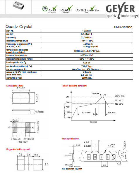 | Geyer晶振 | 單位 | KX-327FT晶振 | 石英晶振基本條件 |