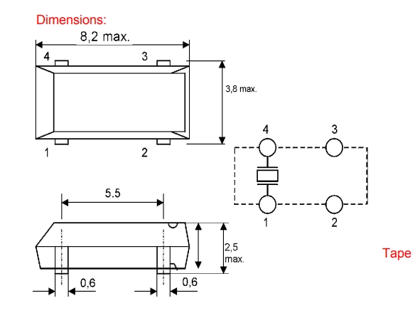 建議將輸出負載安裝在盡可能靠近石英SMD晶振的地方(在20mm范圍之間).