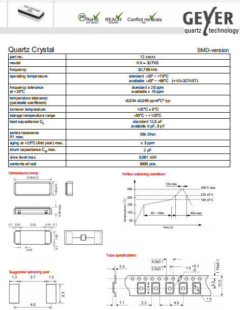 | Geyer晶振 | 單位 | KX-327XS晶振 | 石英晶振基本條件 |