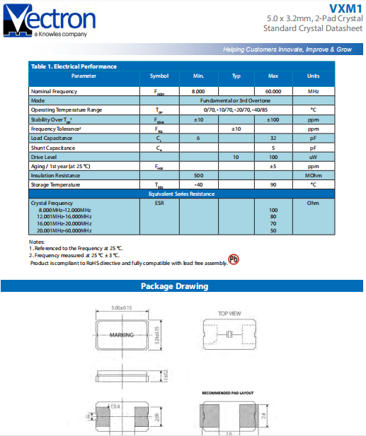 VECTRON晶振,VXM1晶振,貼片無源晶體.普通石英晶振,外觀完全使用金屬材料封裝的,產品本身采用全自動石英晶體檢測儀,以及跌落,漏氣等苛刻實驗.產品本身具有高穩定性,高可靠性的石英晶體諧振器,焊接方面支持表面貼裝,外觀采用金屬封裝,具有充分的密封性能,晶振本身能確保其高可靠性,采用編帶包裝,可對應產品應用到自動貼片機告訴安裝,滿足無鉛焊接的高溫回流溫度曲線要求.