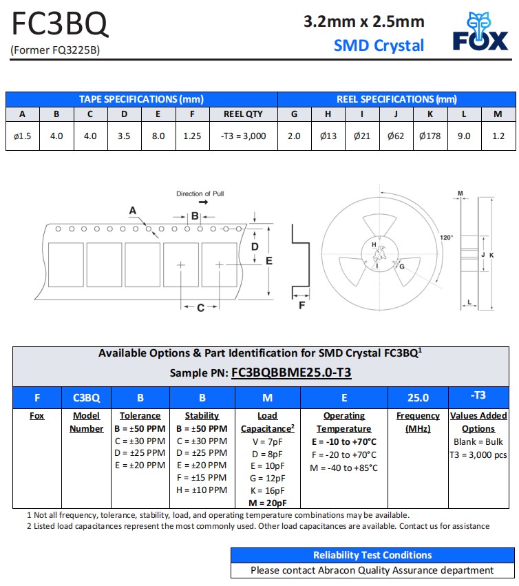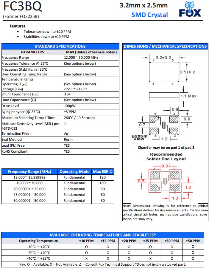 美國(guó)FOX進(jìn)口晶振,FC3BQEBME26.0-T3,汽車?yán)走_(dá)6G晶振,FQ3225B-16.000,3225mm晶振,參數(shù)表
