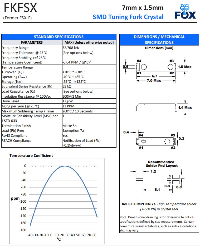| FSXLF327 | Fox福克斯晶振 | FSXLF | 32.768kHz | 4-SMD, Flat Lead, 3 Leads |