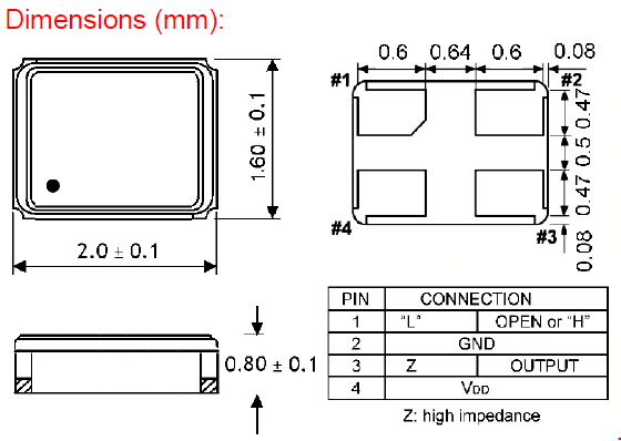 | Dimensions | 1.6 | 1.2 | 0.6 mm |