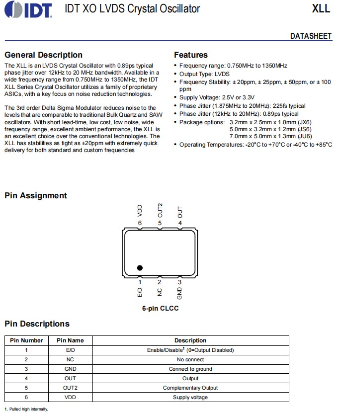 | XLL53VC00.000000I | IDT晶振 | OSCILLATOR VCXO 1.2GHZ LVDS SMD | XPRESSO™ FVXO-LC53 | 1.2GHz |