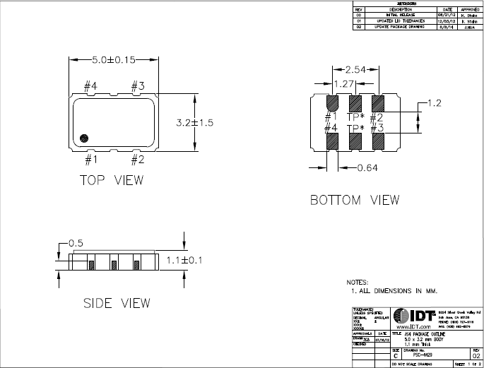 IDT HCMOS晶體振蕩器,XUH536156.250JS4I,無線模塊6G晶振,XUH736156.250JU4I,小體積晶振,尺寸圖