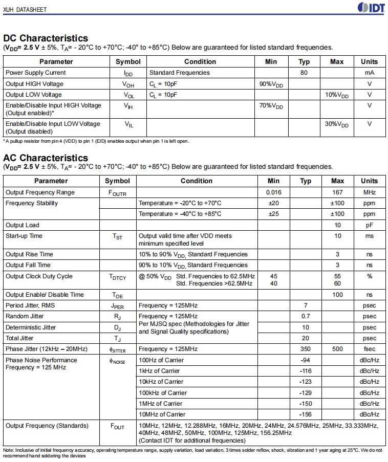 | XUP535125.000JS6I | IDT晶振 | OSC 125MHZ SMD | XUP | 125MHz |