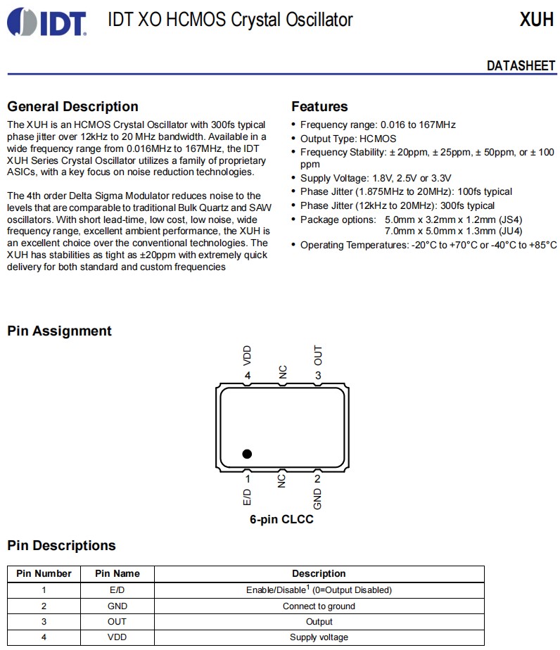 | XUP535125.000JS6I8 | IDT晶振 | OSC 125MHZ 有源晶振 | XUP | 125MHz |