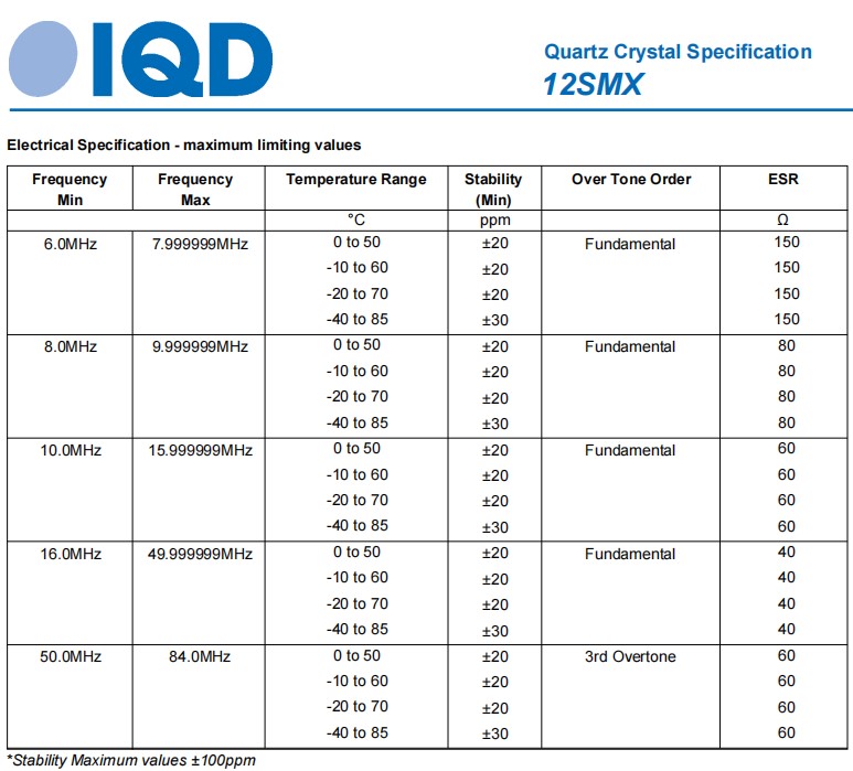| Frequency Stability | ±20.00ppm to ±100.00ppm |