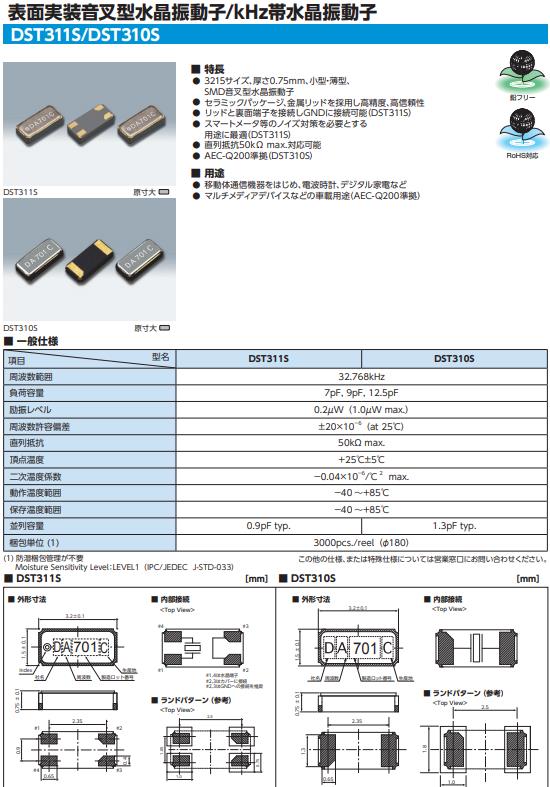 大真空晶振,DST310S超小型晶振,1TJF080DP1AI00P貼片晶體,32.768K時鐘晶體具有小型,薄型,輕型的貼片晶振表面音叉型晶體振蕩器,產品具有優良的耐熱性,耐環境特性,可發揮晶振優良的電氣特性,符合RoHS規定,滿足無鉛焊接的高溫回流溫度曲線要求,金屬外殼的封裝使得產品在封裝時能發揮比陶瓷振蕩器外殼更好的耐沖擊性.
