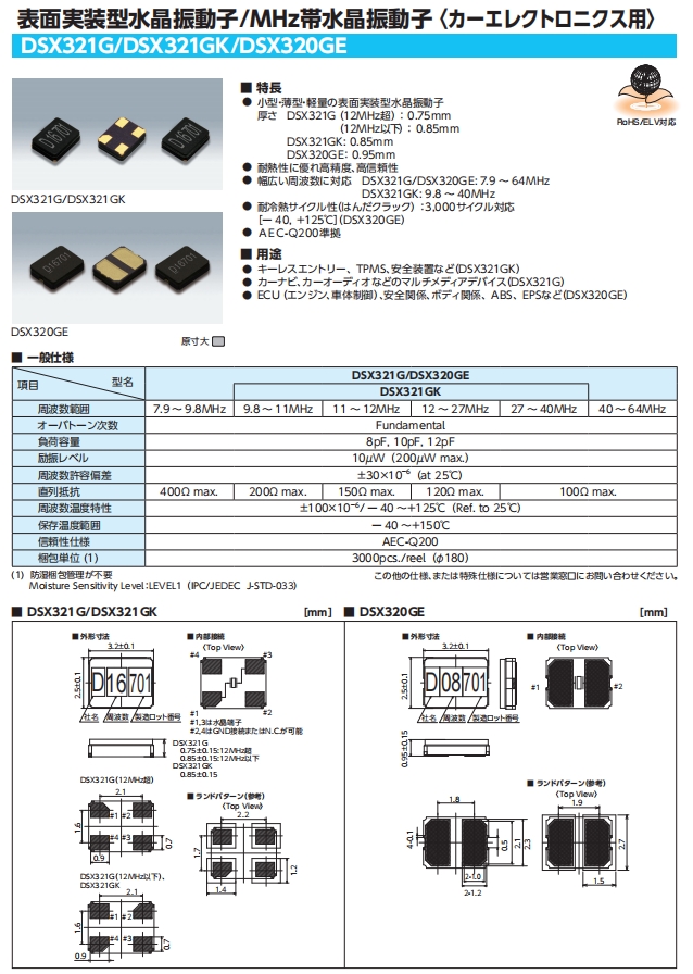 支持廣泛的頻率DSX321GK: 9.8~40mhz