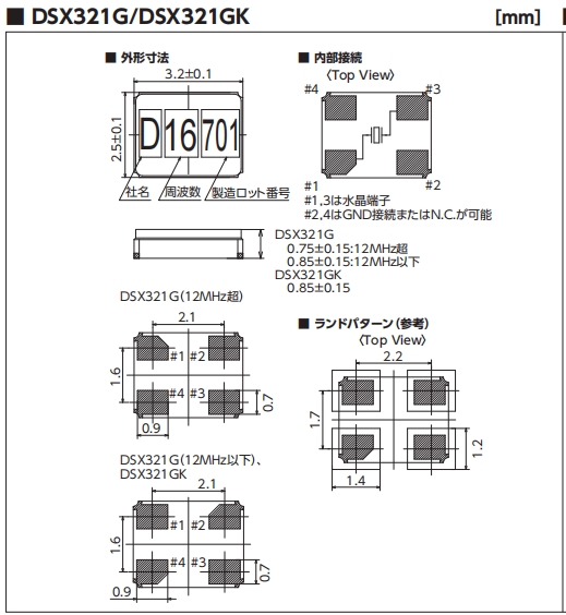| 負荷容量 | 8pF, 10pF, 12pF | |||||||