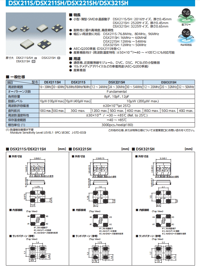 ●兼容AEC-Q200 (DSX211S除外)
