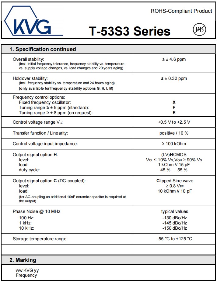 Frequency stability options: ± 0.05 ppm (available only for temp. range 1070): ± 0.10 ppm (not available for temp. range 4085): ± 0.20 ppm (not available for temp. range 4085 ):: ± 0.28 ppm: ± 0.5 ppm: ± 1.0 ppm: |