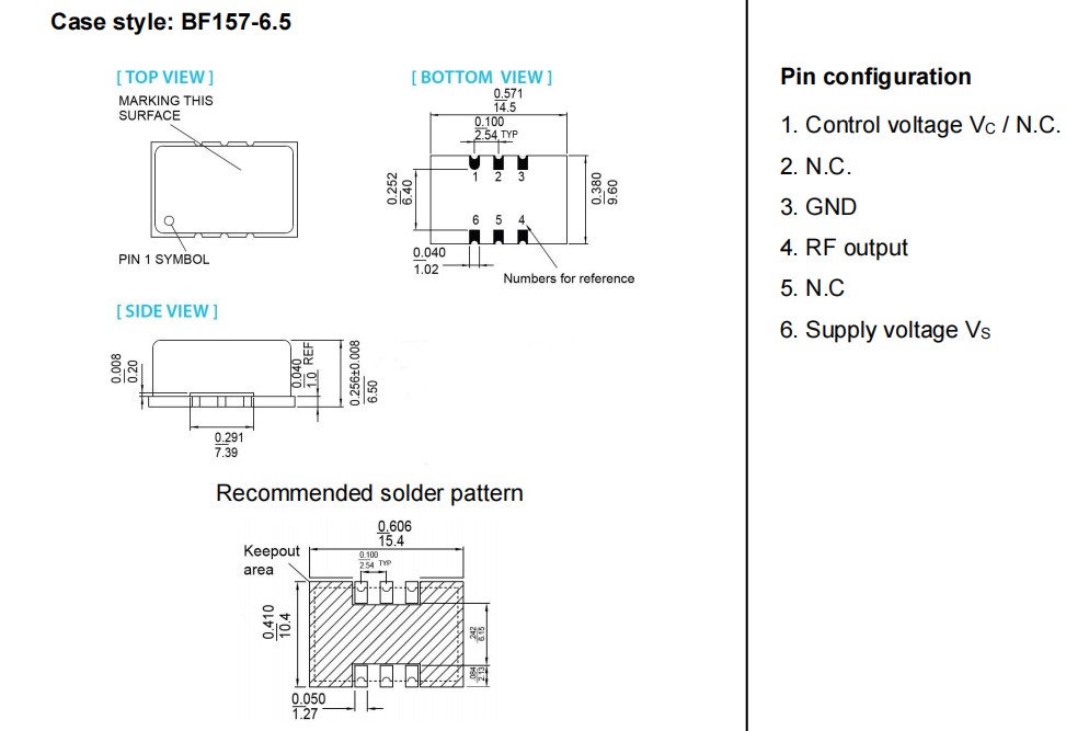 Control voltage range VC : @ VS = 3.3 V: @ VS = 5.0 V: |