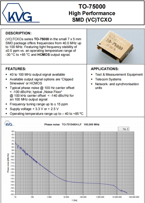 KVG溫補晶振,TO-75A4085KFH-LF-100.000MHz,通訊網絡6G晶振,參數(shù)表