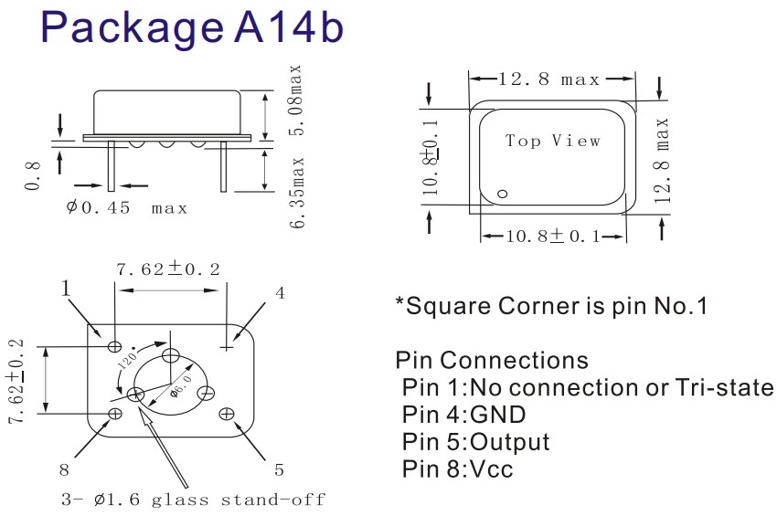 SP01-5TK50-A14B-12.288MHz,Macrobizes品牌,無線網絡晶振,時鐘振蕩器,正方型鐘振,尺寸圖