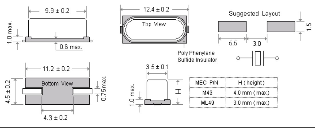 | Item / Type | M49 ( 12.4 * 4.5 * 4.0mm ) series | ML49 ( 12.4 * 4.5 * 3.0mm ) series |