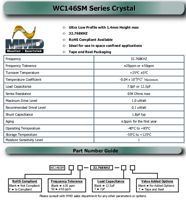 麥迪康7015mm晶振,WC146SMF50-32.768KHz-T,儀器儀表設(shè)備6G晶振,石英貼片晶振,石英晶體諧振器,參數(shù)表