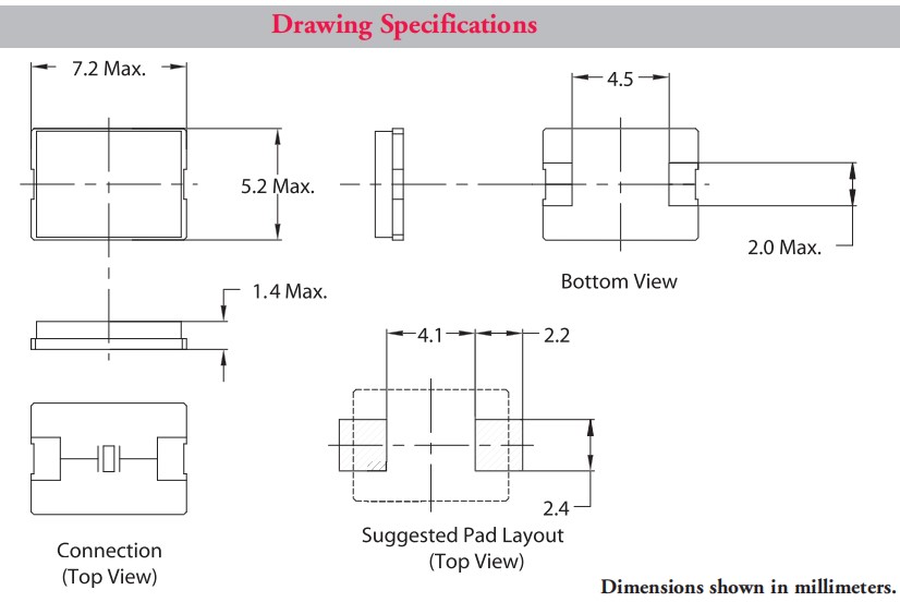 | Load Capacitance (CL) | Series, 16 pF, 20 pF, 30 pF, 32pF or specify | ||||||||