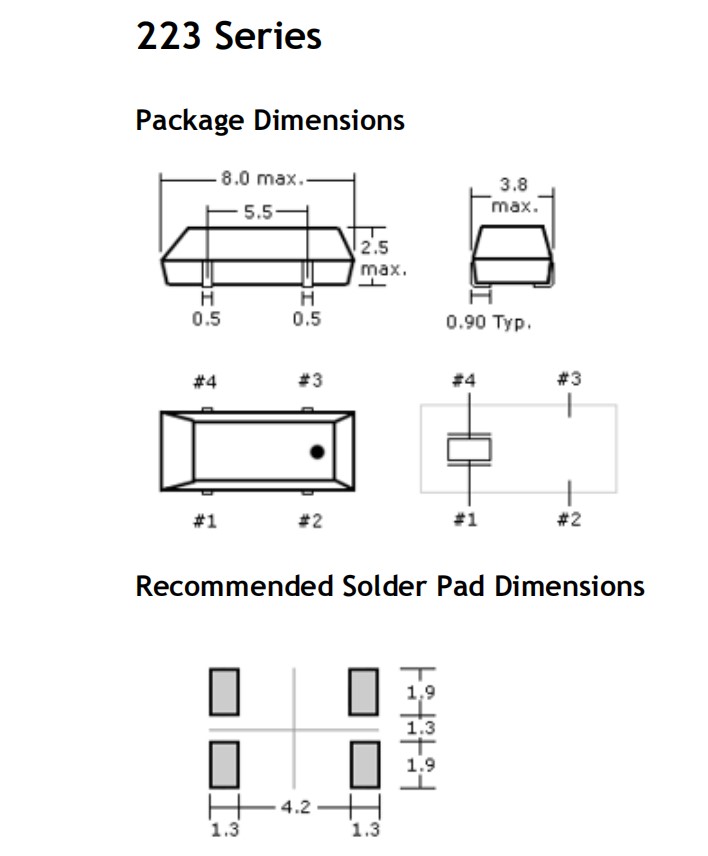 223-000312-20,32.768KHz,8038mm,Oscilent貼片晶振,SMD晶振,儀器儀表設備晶振,尺寸圖
