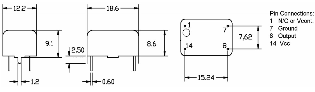 TC61-5AV,10.000MHz,TCXO,PDI品牌,5.0V,低抖動晶振,插件晶振,電信應用晶振,尺寸圖