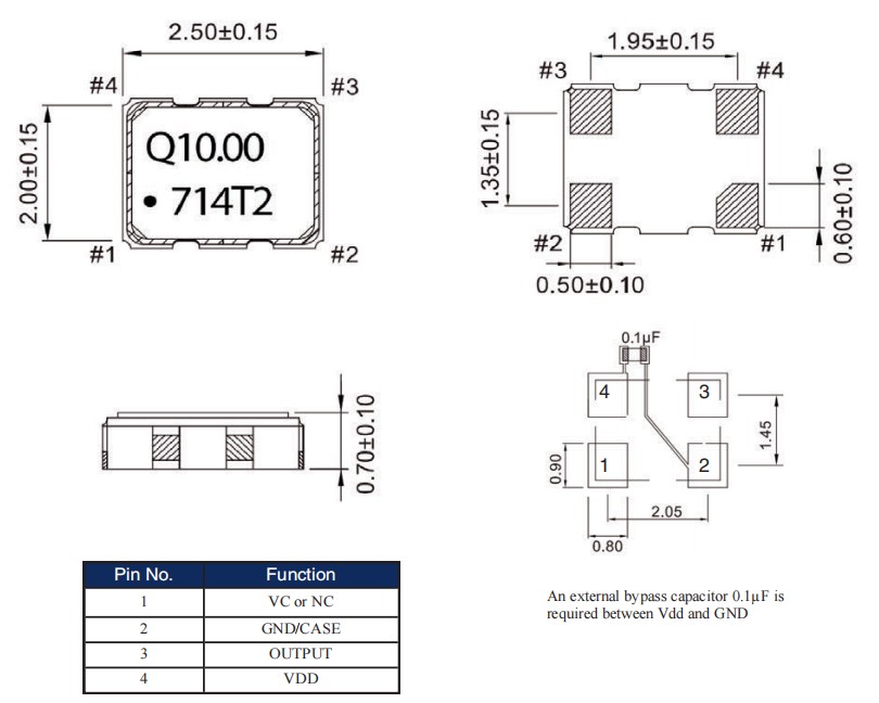 QTCT2203S1T-24.576000,2520mm,TCXO,Q-Tech晶振,QTCT220,導航應(yīng)用晶振,尺寸圖