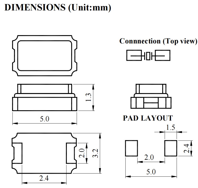 | Frequency Tolerance (25℃) | ±50 ppm Standard (see Crystal Part Number Guide for more details) |