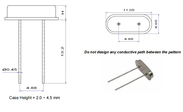 QuartzCom石英通插件晶振,HC-49S,微處理器應用晶振,尺寸圖