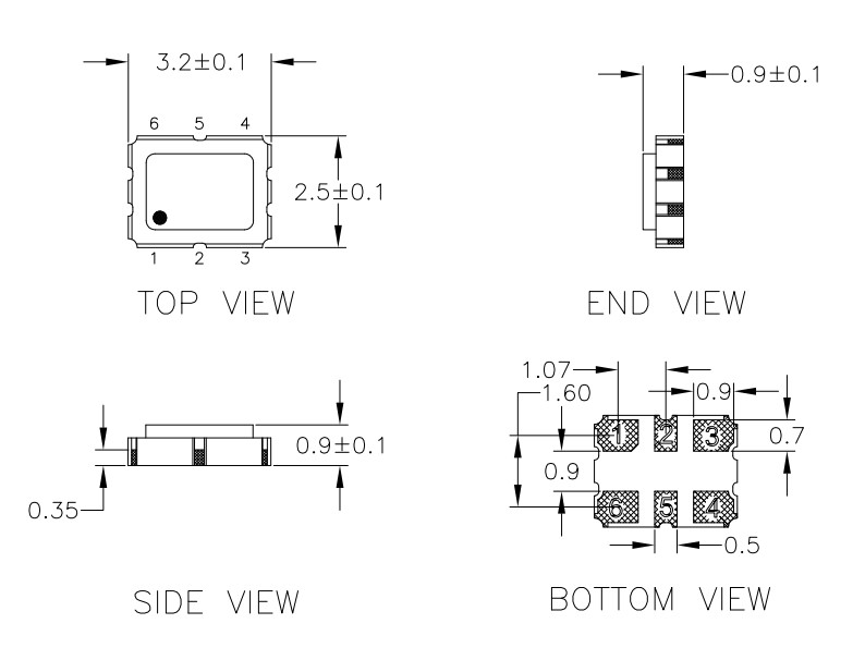 瑞薩LVDS輸出石英晶振,XAL335150.000000K,低抖動晶振,尺寸圖
