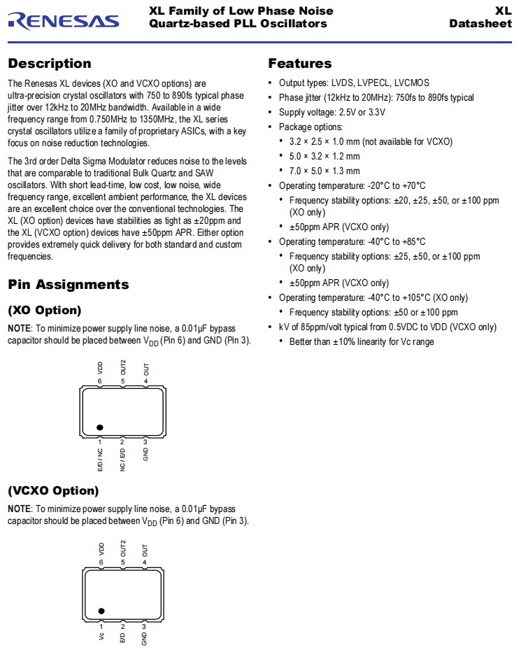 | XLX325025.000000K | Renesas晶振 | XTAL OSC XO 25.0000MHZ H/LV-CMOS | XLX | 25 MHz | HCMOS, LVCMOS |