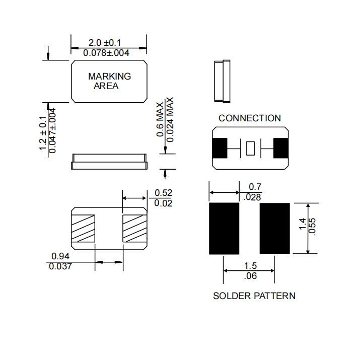超小包裝的2.0 x 1.2 x 0.6 mm