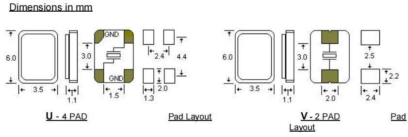AAU20M000000FLH18H,6035mm,STD石英貼片晶振,20MHz,無源晶振,數碼電子晶振,尺寸圖