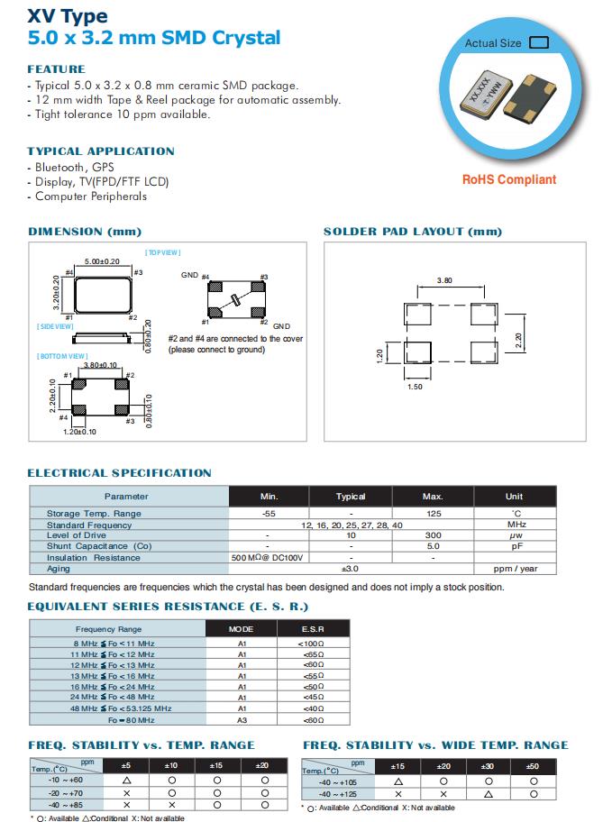| XVDGGHNANF-20.000000 | Taitien晶振 | XV | MHz Crystal | 20MHz | -40°C ~ 125°C |