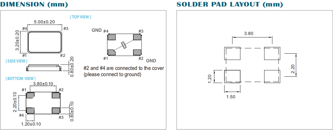 -典型的5.0x3.2x0.8mm陶瓷SMD封裝。