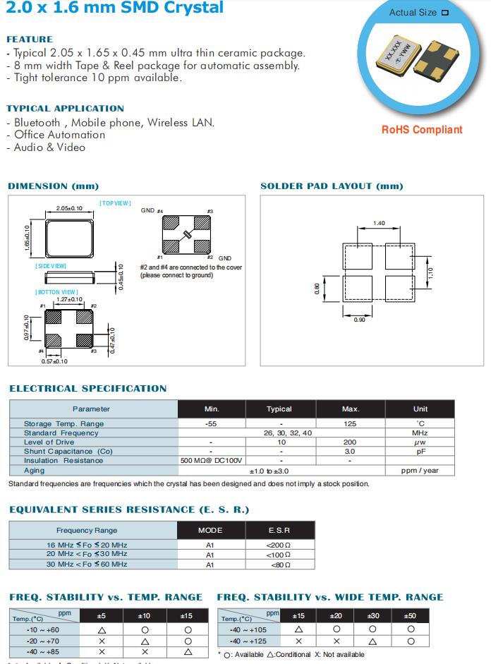 | Standard Frequency | 26 , 30, 32, 40 | MHz | |||||||||||||
