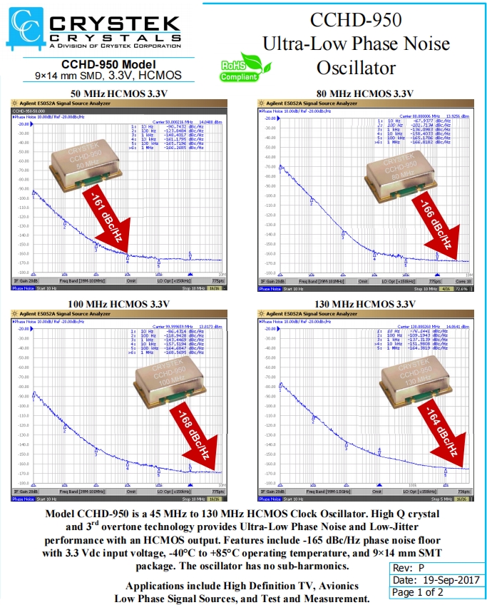 | CCHD-950X-50-80.000 | CRYSTEK振蕩器 | CCHD-950 | XO (Standard) | 80MHz | ±50ppm | 0°C ~ 70°C |