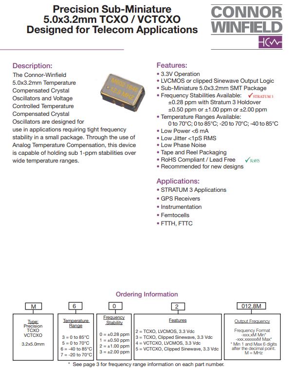 迷你型的康納溫菲爾德TCXO振蕩器M602-040.0M超級(jí)適合GPS接收器,Connor-Winfield公司以超級(jí)高的標(biāo)準(zhǔn)開發(fā)卓越性能,低損耗,低電壓,低抖動(dòng)的TCXO溫補(bǔ)晶振,并結(jié)合高超的生產(chǎn)技術(shù)用心研制而成。ConnorWinfield晶振的TCXOs具有出色的性能、出色的一致性和穩(wěn)定的長(zhǎng)期特性,是要求苛刻的通信、數(shù)據(jù)通信和電信應(yīng)用的首選。所有推薦的封裝類型都具有限幅正弦和/或HCMOS輸出,以及商用至擴(kuò)展或工業(yè)溫度范圍。